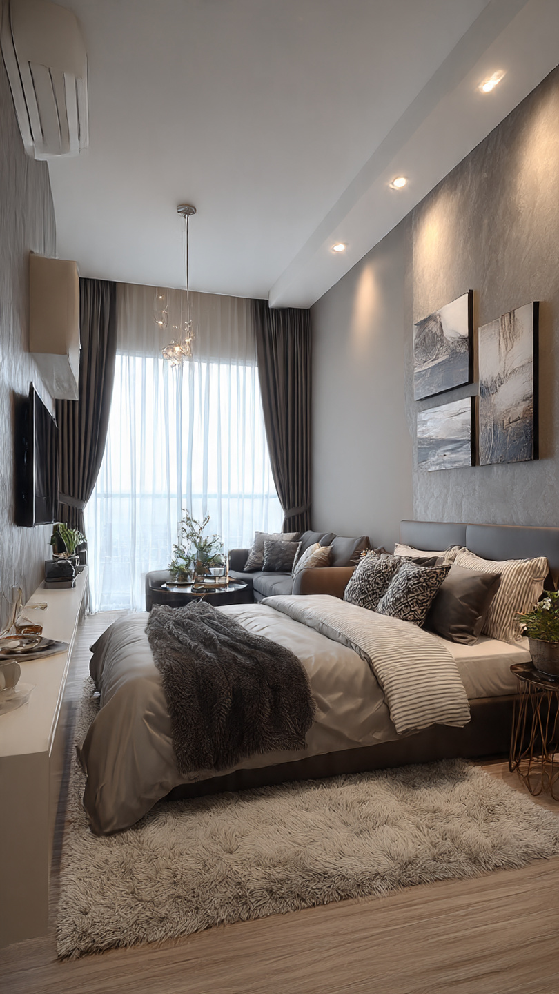 Unit studio cukup selesa untuk pasangan baru berkahwin sebelum berpindah ke rumah lebih besar di masa akan datang.