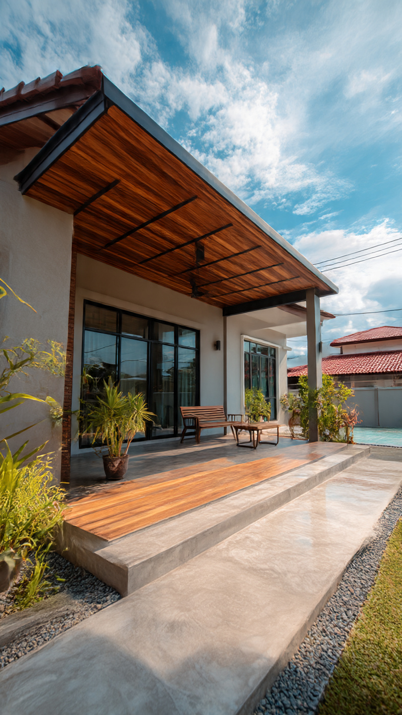 Dari luar, reka bentuk rumah ini tampak sederhana tetapi elegan. Dengan kombinasi cat baru dan susun atur yang teratur, ia memancarkan aura ketenangan dan kemas.